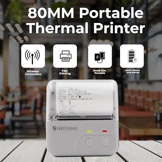 - 3 inch (80mm) portable bluetooth printer with fashion appearance & complete function & print clear & long service life & carry easily and so on.7.HIGH SPEED THERMAL LABEL PRINTER – thermal receipt printer has fast printing up to 50 pos receipts per minute with a speed of 74 mm/s,no need for ink cartridge or ribbons.You can take every where you go such as the logistic, warehouse, catering for printing receipt, post receipt, restaurant order, bar codes, QR code, Logos, Text